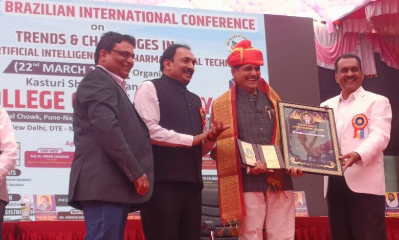 हा पुरस्कार माजी कुलगुरु व कस्तुरी शिक्षण संस्थेचे अध्यक्ष डॉ पंडितराव पलांडे , उपाध्यक्ष डॉ जयश्री ताई पलांडे व मॉडर्न कॉलेज ऑफ फार्मसी चे प्राचार्य डॉ पी डी चौधरी व कस्तुरी फार्मसी कॉलेज चे प्राचार्य डॉ मृणाल शिरसाठ यांच्या हस्ते देण्यात आला.याप्रसंगी डॉ स्वरूप लाहोटी डॉ .गर्ग व डॉ पांडे हे प्रमुख वक्ते म्हणून हजर होते.सदर कॉन्फरन्स मध्ये महाराष्ट्रातील सुमारे ४० फार्मसी महाविद्यालयाचे प्राचार्य व प्राध्यापक उपस्थित होते.